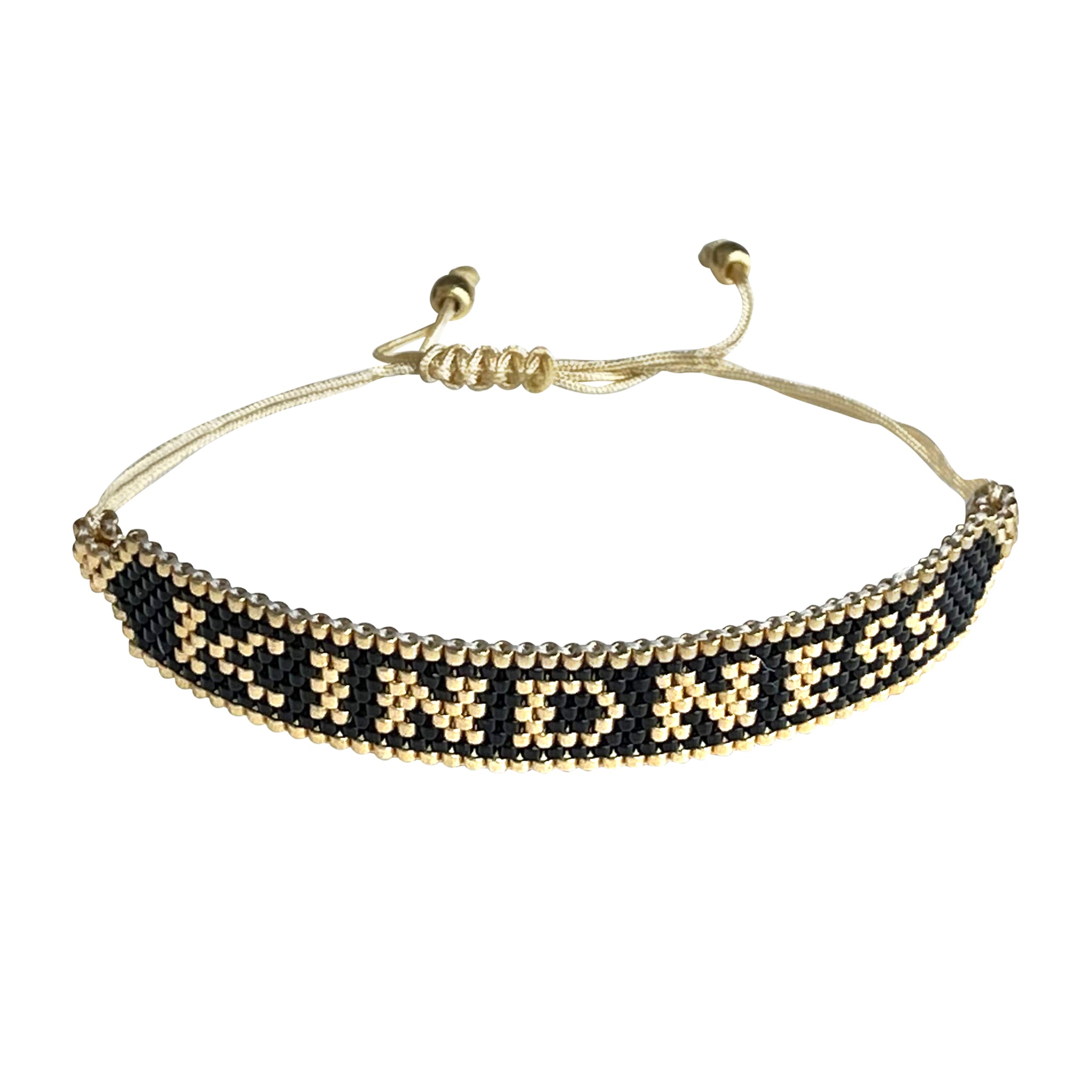 - Metallic Gold and Black Beaded Bracelet